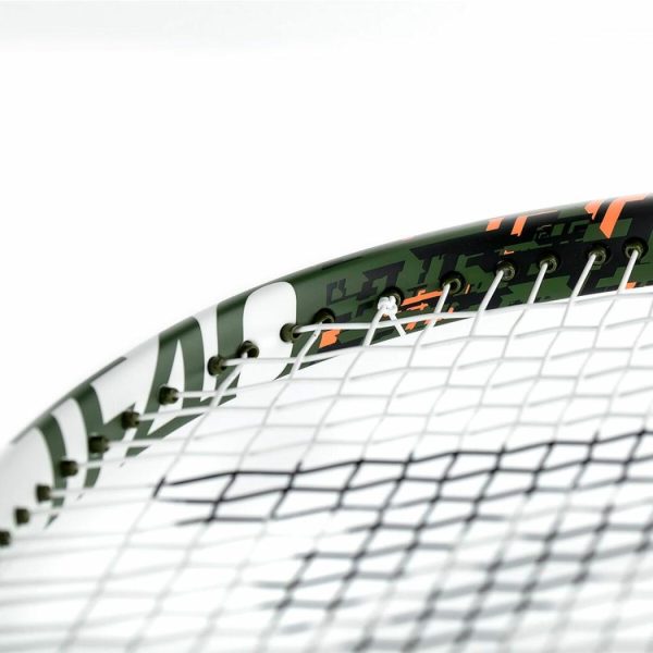 The frame geometry features RS Sharp Section technology, which optimises the flexibility of the frame at impact to maintain trajectory control while ensuring a satisfactory level of power. The racket is also fully “foamed” with polyurethane foam to absorb shock and provide its specific signature feel. The “Extend BG” eyelets are wider and longer to allow the strings to breathe and maintain response on off-centre shots.